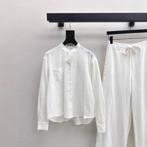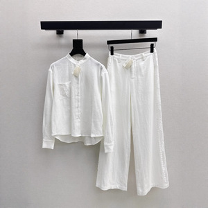 深センNanyouの新しいシンプルなルーズレースステッチリネンスーツシャツ弾性ウエストカジュアルストレートパンツ