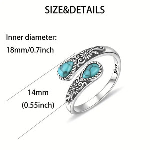クロスボーダーレトロデイジーフラワーパターンターコイズムーンストーンリングシンプルな幾何学的なファッションボヘミアン調節可能なリング