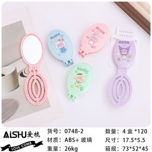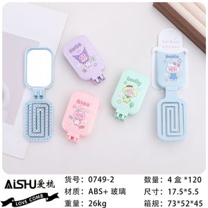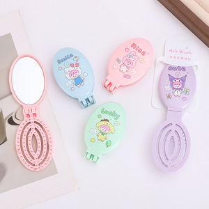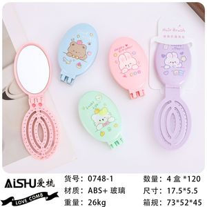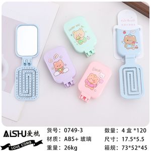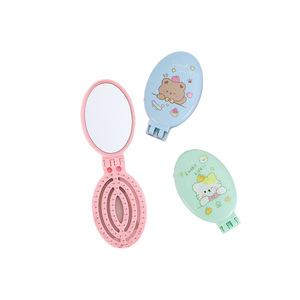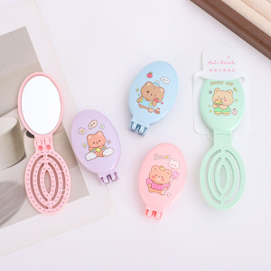 漫画のクマのシリーズのポータブルツーインワン 90% off スタックミラーコーム、かわいい漫画のピンクで、旅行に便利で収納しやすいコームです。