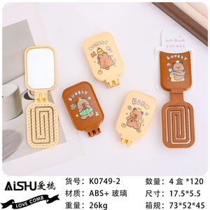 K0749-2 コーヒー色 角型折りたたみミラーコーム