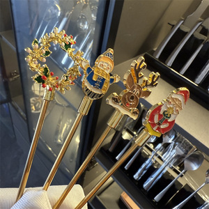 Zhanming ステンレス鋼の新しい漫画クリエイティブクリスマス食器かわいいアフタヌーンティーデザートコーヒーミキシングスプーンクリスマススプーン