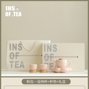 (ピンク)丨お茶セット2人用(タイプAショートティーカップ)ギフトボックス