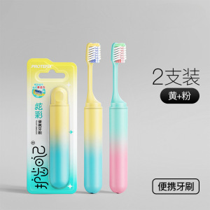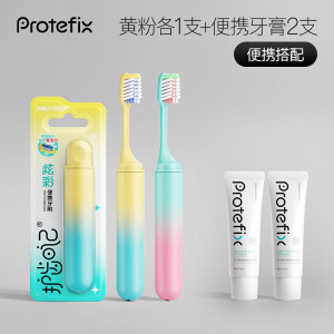 【携帯セット】イエロー+ピンク歯ブラシ合計*2+携帯用フッ素歯磨き粉*2