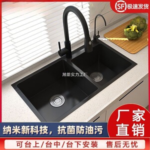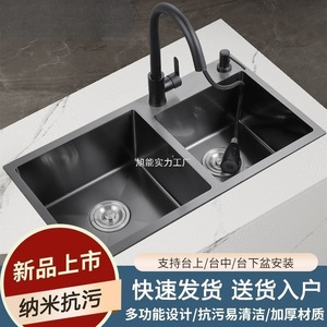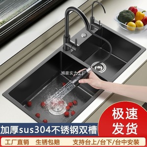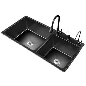 Good Wife キッチン ダブルスロット ブラック ナノ厚みのある 304 ステンレス鋼のシンク、食器洗いシンク、コンプリートセット