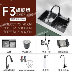 【75*41】ダブルスロット ブラックキングコング-【フルセット】引き出し式蛇口+カップウォッシャー+浄水蛇口
