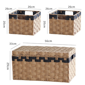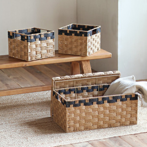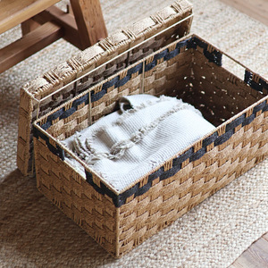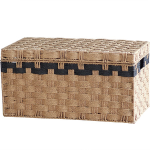 带盖纸绳收纳箱大容量储物筐方形家用客厅卧室衣服玩具整理收纳篮
