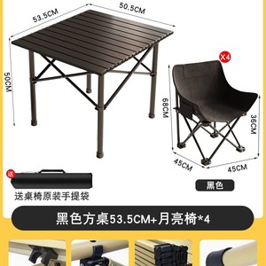 【厚みのあるX型炭素鋼】ブラックスクエアテーブル53cm+ムーンチェア4脚、ポータブル収納袋付き