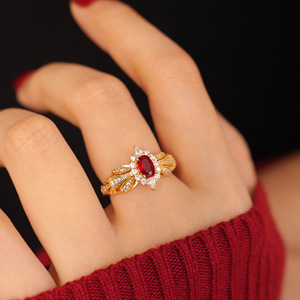 フランス宮廷風レトロな赤いジルコンリング、女性用、エレガントで軽やかな高級感、ジルコンを象嵌した開口リング
