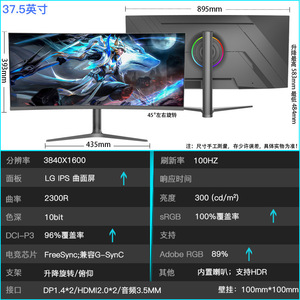 38インチ 4K [NanoIPSLG 曲面スクリーン 100HZ] 昇降・回転分割画面/Typec投影