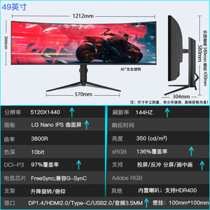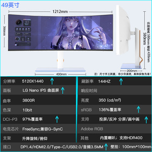 49インチ 5K [NanoIPS LG曲面スクリーン 144HZ] ホワイトリフト&回転分割スクリーン/Typ