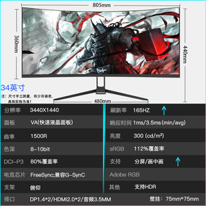 34インチ 4K [HVA大型曲面スクリーン 165HZ] ブラック/分割スクリーン 特別価格