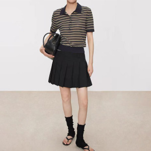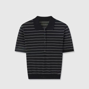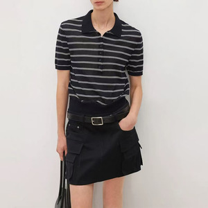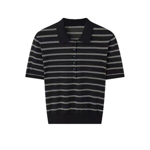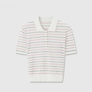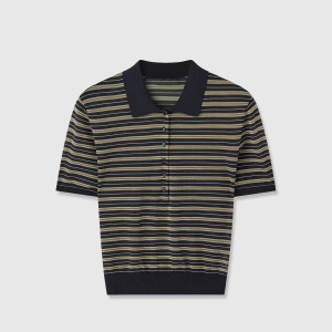夏の新型の復古色のストライプの軽涼感の三酢酸の綿糸の知識分子のPOLO半袖の小さい郭の形のtシャツ