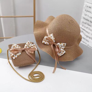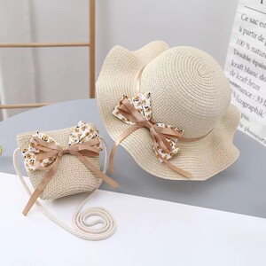 子供女性の夏の日焼け止め帽子プリンセスハットビーチ折りたたみサンハット漁師帽子麦わら帽子帽子バッグセット