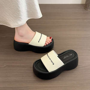 スカートと合わせやすい、厚底サンダル、ビーチサンダル、2025年新作夏用厚底スリッパ、女性用