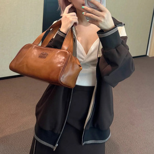 ニッチストリートスタイルレトロオールドオイルレザーシンプルハンドバッグハンドバッグボストンレイジースタイルレディースバッグ2025トレンド