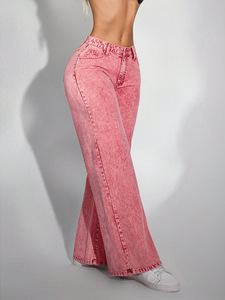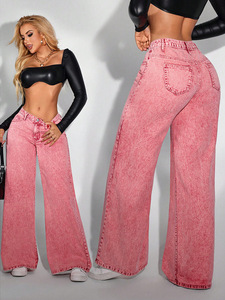 ヨーロッパとアメリカの貿易婦人服クロスボーダーレトロドレープジーンズ夏ハイウエストワイドレッグルーズストレート多用途ロングパンツ