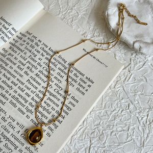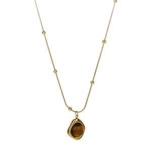 秋冬美拉德虎眼石吊坠项链太阳花吊坠轻奢小众钛钢链不褪色毛衣链