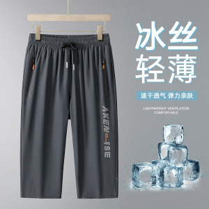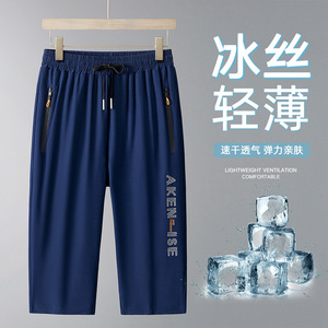 夏の新しいアイスフィールクロップドパンツ速乾性パンツメンズスポーツパンツ大きいサイズルーズメンズスポーツストレッチドレープ通気性メンズ