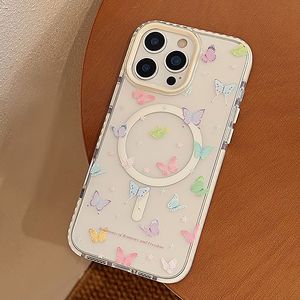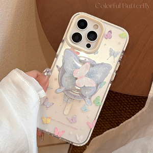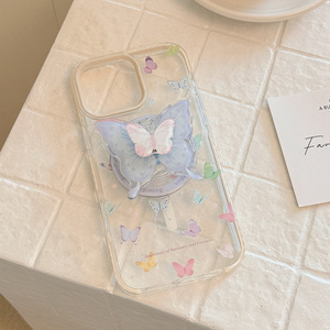 フレッシュカラー蝶16promax透明iPhone15携帯電話ケース適用13回転磁気吸引スタンド14フラッシュパウダー