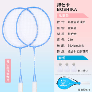 子供用バドミントンラケット ブルー ダブルラケット バッグ+無料耐久ボール3個付き