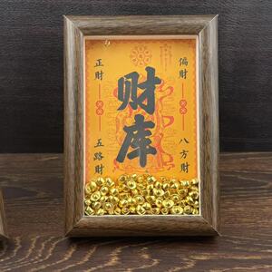富の宝庫のフォトフレームの装飾品、富のフォトフレーム、金庫のフォトフレーム、元宝のフォトフレーム、黄色の富の神のフォトフレーム、富の宝庫の元宝の装飾品