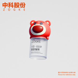 30ml 透明フラットショルダーボトル + 赤クマキャップ + 独立した中栓、空ボトル、カルシウムナトリウムガラス