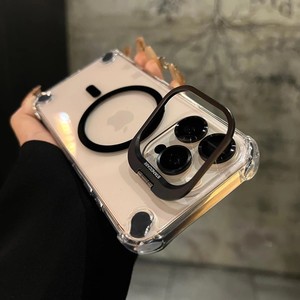 iPhone16PROMAXアクリルレンズホルダー携帯電話ケースApple 15透明エアバッグ落下防止磁気吸引に適しています