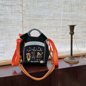 日本の新しいボールチェーン環境に優しいショッピングバッグナイロン布刺繍フラワーポータブルキャンバスバッグナイロンショッピングバッグ