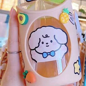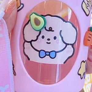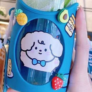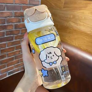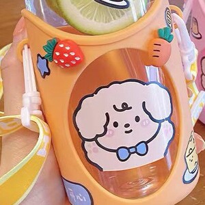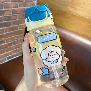 新しい漫画の子供用ストロープラスチックカップ、環境に優しく、直接飲める、学生のファッショナブルなポータブルかわいいメガネクマウォーターカップ