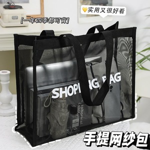 メーカーカスタマイズされた大容量透明ナイロンメッシュポータブルショッピングバッグ旅行ビーチ収納バッグ屋外収納