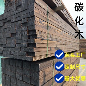メーカー卸売炭化木材板、カラーパイン炭化木材角柱、モミの木屋外深炭化木材