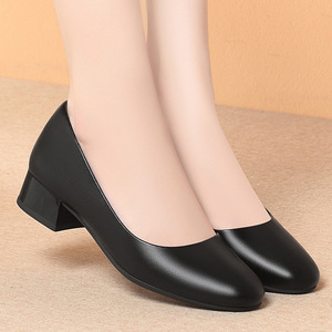 スクエアトゥ太ヒールソフトソールプロフェッショナルワークシューズレディースブラックローヒールミッドヒールシングルシューズ3cmフォーマルレディースシューズパンプス