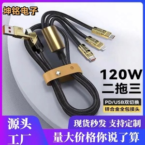 ブラックゴールド 2-3-in-1 ライト付きナイロン編組高速充電ケーブル Apple Android Huawei 充電ケーブルデータケーブルに適しています