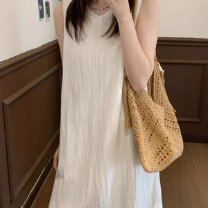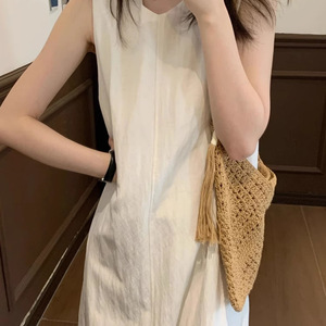 フレンチスタイルの白いノースリーブドレス2025夏の新しいハイエンドファッションルーズロングスカートベストドレス