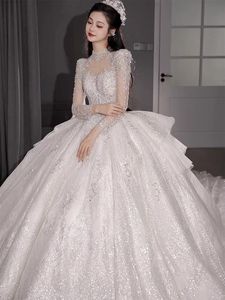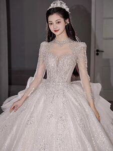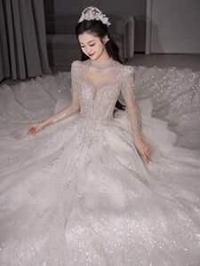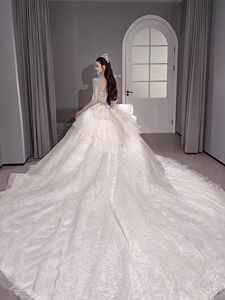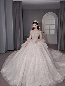 主婚纱2025新款新娘长袖复古高端重工法式轻奢华大拖尾小个子春夏