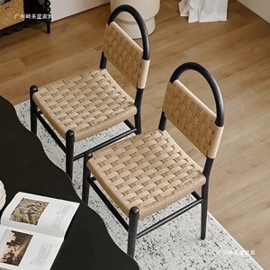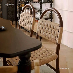 フランス中世無垢材ヴィヴィアンダイニングチェア編組無垢材椅子レトロリビングルームホーム編組背もたれレジャー化粧
