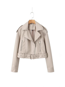 ZA クロスボーダーヨーロッパとアメリカ 2025 新しい女性のレトロなオートバイレザージャケットショートベルト模造革ボンバージャケット