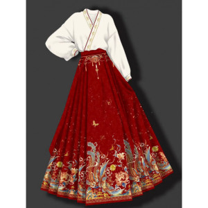 白いシャツ+赤い馬のスカートのナショナルスタイルスーツ