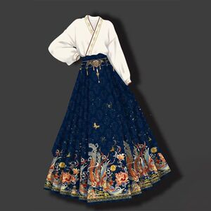 V5H 新しい中国風の女性のための完全なセット 2025 新しい改良された漢服シャツとスリムな中国風の馬面スカート 2