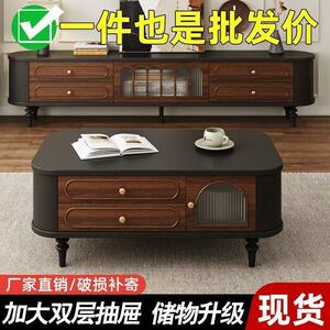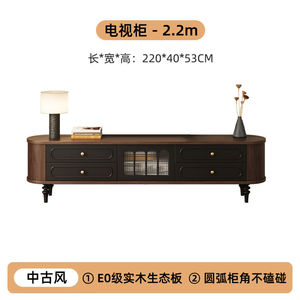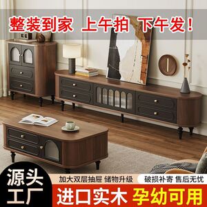 フレンチスタイルテレビキャビネットレトロミッドセンチュリースタイル無垢材テレビキャビネットコーヒーテーブル組み合わせリビングルームホーム2025新しいアメリカンスタイル