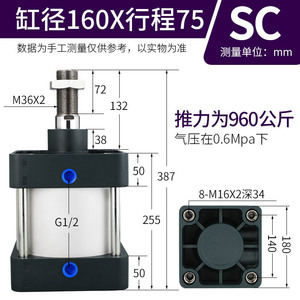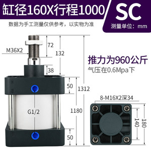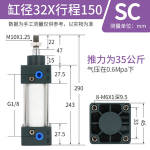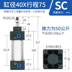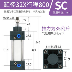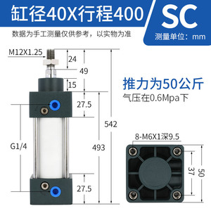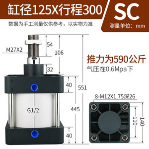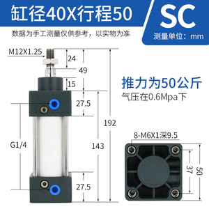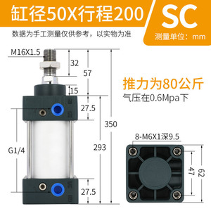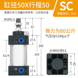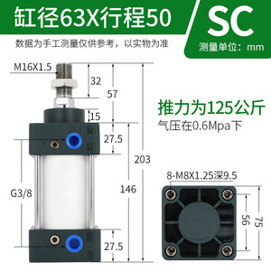 エアタックタイプSC標準シリンダ 大推力フルボア32/40/50/63/80/100/125-25-50-S