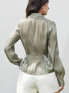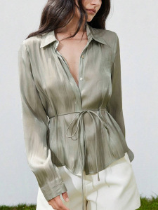 ヨーロッパとアメリカの国境を越えた対外貿易婦人服の新しいスタイルのエレガントなレースアップウエストデザインシャツカーディガンサテンシャツトップ