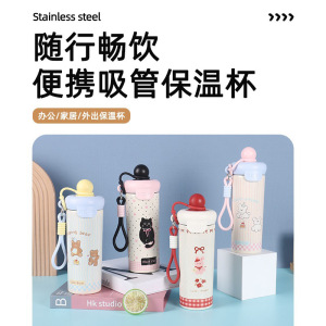 卸売 316 ステンレス鋼フロート断熱カップ大容量漫画ウォーターカップキャリーストラップ付き高価値便利なストローカップ
