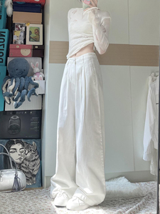 ホワイトリヨセルテンセルジーンズレディース夏薄いハイウエストストレートドレープルーズワイドレッグフロアレングスパンツ