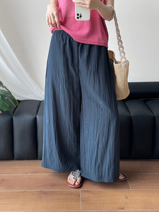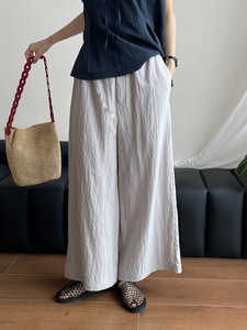 【福利厚生品、返品交換不可】韓国風プリーツ加工軽量カジュアルパンツ レディース ゴムウエスト 9分丈パンツ 2759