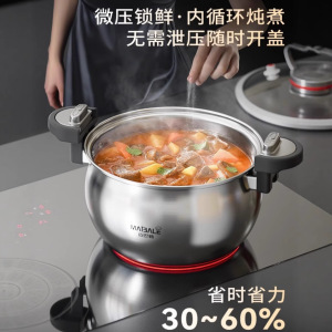 本物のマイバラ微圧スープポット家庭用シチューと煮込み鍋ステンレス鋼の厚みのある両耳コーティングされていないストーブなし