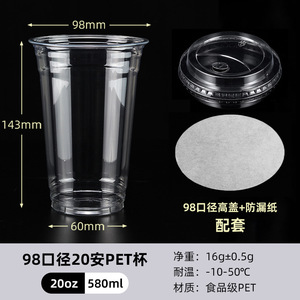 98-20オンス (600ml) カップ + 高蓋 + 漏れ防止紙
