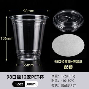98 口径ミルクティーカップ使い捨て PET コーヒー冷たいドリンクカップレモンティースタンドアイスパウダー包装カップバッチ蓋付き