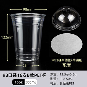 98-16オンス (500ml) カップ + 高蓋 + 漏れ防止紙