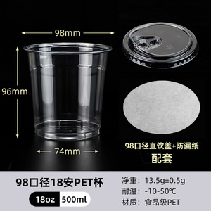98-18オンス (500ml) カップ + 平らな蓋 + 漏れ防止紙
